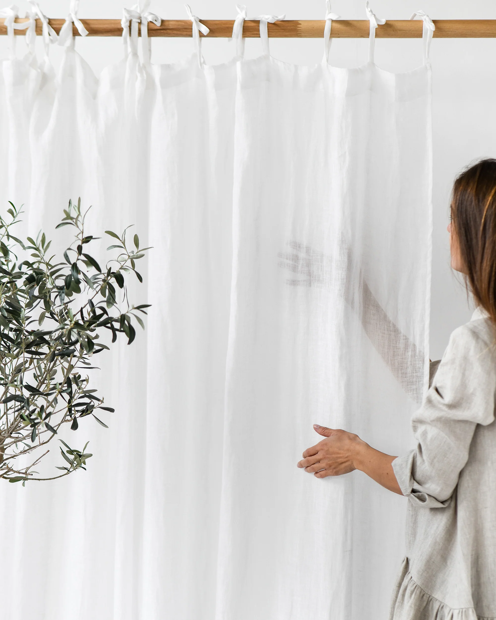 Sheer tie top linen curtain panel (1 pcs)